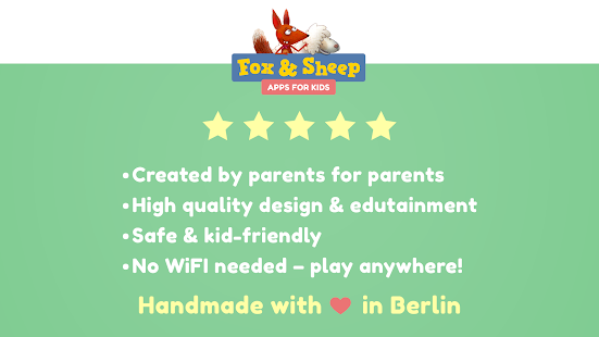 We are a Studio in Berlin and develop high quality apps for kids at the age of 2-8 years. We are parents ourselves and work passionately and with a lot of commitment on our products. We work with the best illustrators and animators around the world to create and present the best apps possible – to enrich the lives of our and your kids.