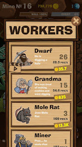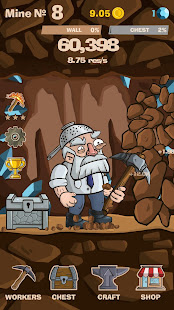 Sell resources to hire new workers or use them to craft upgrades and equipment! Deepen into the mine, destroy rock walls on your way and open undiscovered locations!