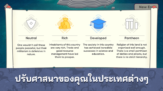 สร้างศาสนาที่เป็นเอกลักษณ์ของคุณเองและดูว่าศาสนานั้นยืนหยัดผ่านการทดสอบของเวลาได้อย่างไร มันจะทนต่อความท้าทายและรวมมนุษยชาติเข้าด้วยกันได้หรือไม่? พลังอยู่ในมือคุณ!