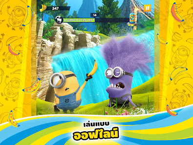 Illumination, Universal และ Gameloft ผนึกกำลังกันสร้าง Minion Rush เกมวิ่งไม่รู้จบไม่ใช้ WiFi ที่สามารถเล่นออฟไลน์ได้ทุกเวลา! วิ่งผ่านสถานที่สุดเจ๋งมากมาย หลบหลีกกับดักอันตราย ต่อสู้กับวายร้ายสุดโฉด และเก็บกล้วยแสนสวยสุดเจิดจ้ามาให้หมดเลย!