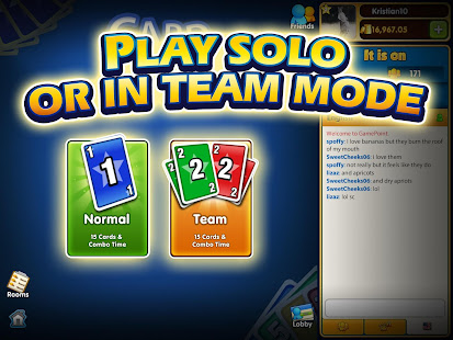 ต้องการเล่นร่วมกับเพื่อน ๆ สมาชิกในครอบครัวหรือผู้เล่นแบบสุ่มเป็นทีมหรือไม่? โหมดทีมเหมาะสำหรับคุณ! โหมดทีมที่แฟนๆ ชื่นชอบนั้นทำงานเหมือนกับโหมดปกติ ยกเว้นว่าคุณสามารถเล่นได้ทั้งสต็อกของคุณเองและของคู่หูของคุณและทิ้งกอง ทีมแรกที่จบหนึ่งในกองหุ้นชนะ