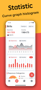 Based on the record entered, you can instantly see your expense by category and changes between each month. And you can see the change of your assets and income/expense indicated by a graph as well.