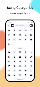 Money manager has various record type, including food, bills, transportation, car, entertainment, shopping, clothing, insurance, tax, telephone, smoke, health, pet, beauty, vegetables, education, salary, awards, sale, refunds, investments, dividends etc.