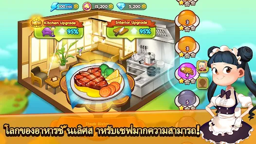 สนุกไปกับอุปกรณ์ภายในห้องครัว และบรรยากาศภายร้านอาหารที่มีระดับซึ่งจะดีขึ้นยิ่งขึ้นไปอีกในทุกๆ การอัพเกรด!