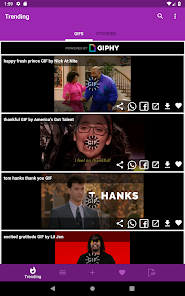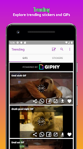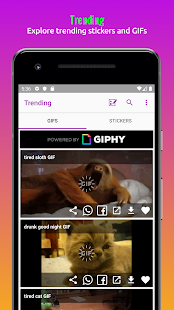 Get all the trending gifs and stickers from GIPHY site and able to download to device and share to all social media applications.