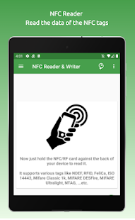 NFC/RF reader and writer app very easy to use.Just hold the NFC/RF card against the backed of your device to read the data on the NFC/RF tags.