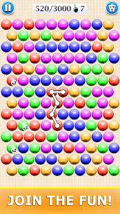 This is a game filled with challenges and fun. Connect bubbles one by one by moving your finger across the screen to make them disappear. Form groups of three or more neighboring bubbles of the same color to bust them. Aim for the longest connections to get bigger scores.