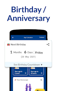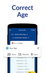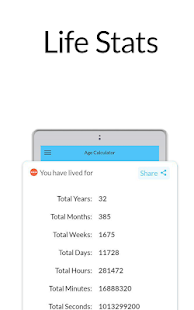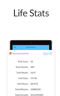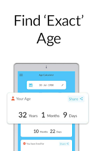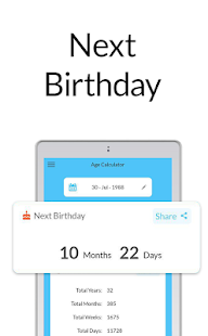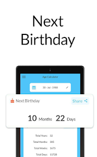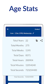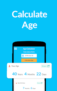 มีคนถามบ่อยว่า "อายุเท่าไหร่" และต้องใช้การคำนวณทางจิตเพื่อเข้าถึงคำตอบที่แน่นอน แอพอายุนี้ช่วยในการคำนวณอายุที่แน่นอน สิ่งที่คุณต้องทำคือป้อนวันเกิดที่ถูกต้องและผลลัพธ์จะแสดงอายุที่แน่นอน วันเกิดถัดไป นอกจากนี้ยังมีส่วนพิเศษในหมวดหมู่ผลลัพธ์ซึ่งจะแสดงวินาที นาที ชั่วโมง วัน สัปดาห์ เดือน ปี ที่คุณเคยอาศัยอยู่จนถึงตอนนี้