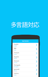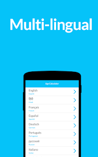 แอพค้นหาอายุมีให้บริการในหลายภาษาเพื่อคำนวณอายุที่แน่นอนของคุณไม่เกินวินาที หรือคุณสามารถคำนวณอายุที่แน่นอนของคุณหลังจาก 100 ปี แอพ Age Calculator อำนวยความสะดวกในการใช้แอพในภาษาที่ต้องการ ที่สามารถเข้าถึงได้โดยใช้ปุ่มเปลี่ยนภาษาและสามารถดูอายุที่แน่นอนได้ในภาษาที่ต้องการ อายุที่แน่นอนโดยใช้แอพ Age Calculator สามารถแชร์ในภาษาใดก็ได้ คำถามเช่น "คุณอายุเท่าไหร่" , "คุณอายุเท่าไหร่" สนุกสุดเหวี่ยงที่จะตอบด้วยแอพ Age Calculator ตามวันเดือนปีเกิด