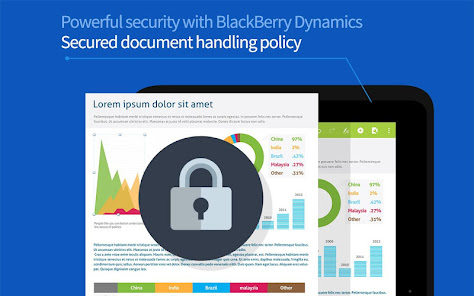 ดูและแก้ไขเอกสารประเภทต่างๆ / ความเข้ากันได้ดีกับเอกสาร Microsoft Office / จานเอกสารความเร็วในการโหลด / การนำเสนอเยี่ยมได้ทุกเวลาและทุกที่การรักษาความปลอดภัย / มีประสิทธิภาพด้วย BlackBerry Dynamics