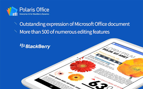 POLARIS สำนักงานสำหรับ BlackBerry เป็นโปรแกรม Office Mobile ที่ช่วยให้ผู้ใช้ BlackBerry Dynamics เพื่อดู / แก้ไขโปรแกรม Microsoft Office (Word, Excel และ PowerPoint) เอกสารเกี่ยวกับมาร์ทโฟนแท็บเล็ต ผู้ใช้สามารถดูไฟล์ข้อความ / แก้ไขและดู .pdf และไฟล์ .hwp เช่นกัน คุณภาพการแสดงผล POLARIS สำนักงานที่ดีแสดงให้เห็นทุกตำราแผนภูมิรูปภาพและอื่น ๆ ของเอกสารที่ทำกับ Microsoft Office ในเครื่องคอมพิวเตอร์เช่นเดิมของตัวเองโดยไม่ต้องสูญเสียใด ๆ ดาวเหนือและสำนักงานสำหรับ BlackBerry มีคุณสมบัติการแก้ไขที่มีประสิทธิภาพและมีอินเตอร์เฟซที่ใช้งานง่ายที่ช่วยให้คุณแก้ไขเอกสารได้อย่างง่ายดาย ตอนนี้คุณได้อย่างปลอดภัยและสะดวกสามารถดู / แก้ไขเอกสารสำคัญบนอุปกรณ์มือถือของคุณ