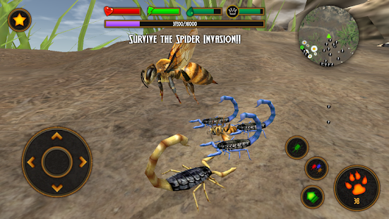 You will enter this insect world as a young scorpion and build your colony. Finding workers will help to establish your colony. When you find all 6, the King will arrive. Once your colony is large enough, the king will arrive. You will also find yourself in head to head battles against Ant colonies, Spiders, Praying Mantis, Wasp, Butterflies, Honey Bees, Beetles, and Dragonflies. Insect hunting has never been more fun.