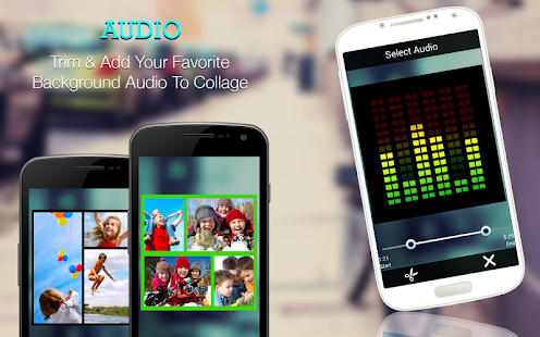 Adding Audio To Video: choose your favorite audio or music file and add/change audio to your video. Video Collage also supports Trim Audio functionality, before adding audio you can trim audio and add to video. This video maker supports video editor functionalities also.