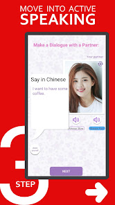 เรียนภาษาจีน (แมนดาริน) ผ่านบทเรียนสนทนาภาษาจีน จากอัลกอริธึมทีละขั้นตอน คุณจะได้ฝึกคำศัพท์และโครงสร้างทางไวยากรณ์ที่ใช้บ่อยที่สุดเพื่อเรียนภาษาจีนและพูดภาษาจีนกลางให้ได้ภายใน 2-5 เดือน