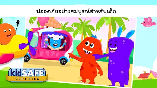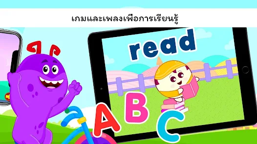 เพลงสำหรับเด็ก, การออกเสียง, เรื่องราว, กิจกรรม และเกมสำหรับเด็กที่ฮิตกว่า กว่า 40+ แบบ เล่นได้ฟรี นอกเหนือจากนี้สามารถซื้อได้โดยการสมัครสมาชิก