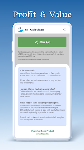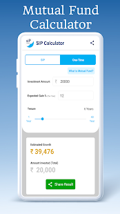 เครื่องคิดเลข SIP ที่ใช้งานง่ายนี้ช่วยให้คุณวางแผนการลงทุน SIP ของคุณ ด้วยแอพเครื่องคิดเลข SIP คุณสามารถดูกำไรโดยประมาณจากหมวดหมู่กองทุนรวมต่างๆ คุณสามารถดูทั้งผลตอบแทน SIP และผลตอบแทนแบบครั้งเดียว (เงินก้อน)