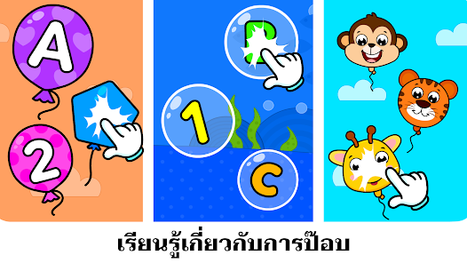 เกมการเรียนรู้สำหรับเด็กเป็นเกมที่สนุกและดึงดูด รวมถึงยังให้ความรู้อีกด้วย ข้างในมี เจาะฟอง, เจาะลูกโป่ง, ไข่เซอร์ไพรส์, ดนตรี และเกมแสนสนุกสำหรับเด็กอีกมากมายที่จะทำให้เด็ก ๆ ของคุณฉลาดและสนุก