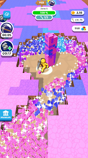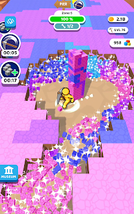 Explore different types of beautiful ores and sell them to make gold. But before selling, stack theses ores at your back and make giant stacks!