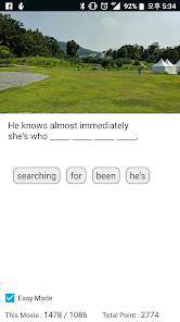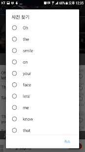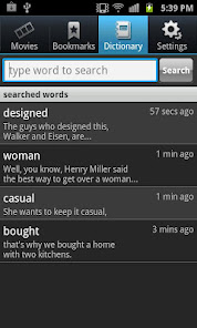 9. Dictionary: By touching the subtitle lightly from the movie image or by long clicking the subtitle from the lower script, the word list will be displayed. When you select a word to search, the word will be shown in the dictionary.