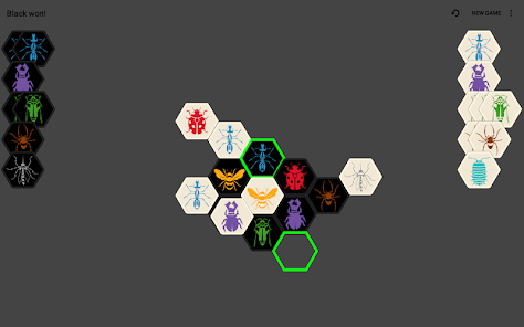 The soldier ants battle to keep control of the outside of the hive, whilst the Beetles climb up to dominate the top. Spiders moving into holding positions as the Grass Hoppers jump in for the kill. Keeping one eye on the hive and the other on your opponents reserves, the tension builds as one wrong move will see your Queen Bee quickly engulfed... game over!