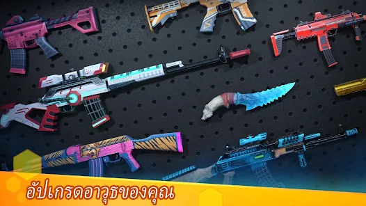 * เล่นเกมและผ่านการท้าทายเพื่อปลดล็อกหน้ากาก เสื้อ กางเกง สกินปืน อาวุธระยะประชิด และของอื่นๆ