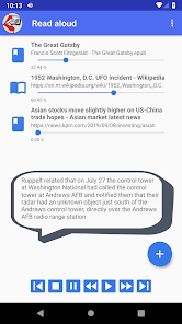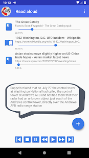 ฟังได้ทุกที่จากหน้าเว็บ ebook เอกสาร ไฟล์ข้อความ เปลี่ยนหนังสือ ข่าวสาร นิตยสาร บทความทางวิทยาศาสตร์ให้เป็นหนังสือเสียงและพอดคาสต์เสียง สร้างเพลย์ลิสต์อย่างง่ายดายด้วยหน้าเว็บหรือไฟล์ข้อความใดๆ แล้วฟังในภายหลัง แม้จะไม่มีอินเทอร์เน็ต