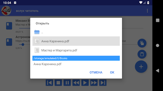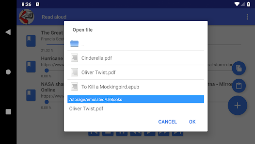 เพียงแชร์ที่อยู่เว็บ URL จากอินเทอร์เน็ตเบราว์เซอร์ของคุณ วางข้อความจากคลิปบอร์ดหรือเปิดไฟล์ในแอปโดยตรง รองรับรูปแบบ e-book และเอกสารมากมาย เช่น pdf, epub, txt, html, rtf, odt, docx
