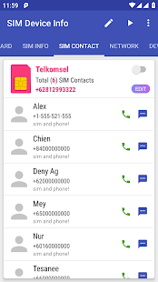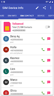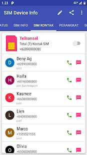 แสดงหมายเลขติดต่อที่เก็บไว้ในซิมการ์ด ในแท็บนี้คุณสามารถลบผู้ติดต่อซิมและส่งออกผู้ติดต่อซิมไปยังโทรศัพท์ได้ นอกจากนี้ยังมีคุณสมบัติอื่น ๆ เช่นการคัดลอกผู้ติดต่อโทรส่งข้อความและแบ่งปัน!