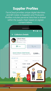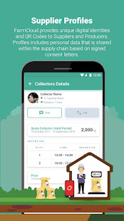 With FarmCloud, the farmer access live transaction receipts, price and product standard information, and good agriculture practice advice. For Farmers certified with voluntary certification standards, the FarmCloud is a digital certificate include code of conduct, contracts, and annual inspection records.