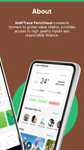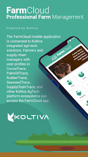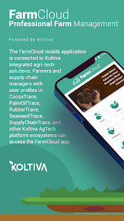 The FarmCloud mobile application is connected to Koltiva integrated agri-tech solutions. Farmers and supply chain managers with user profiles in CocoaTrace, PalmOilTrace, RubberTrace, SeaweedTrace, SupplyChainTrace, and other Koltiva AgTech platform ecosystems can access the FarmCloud app.