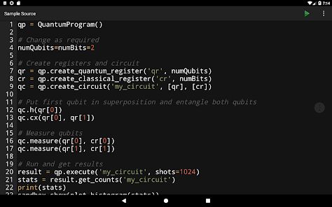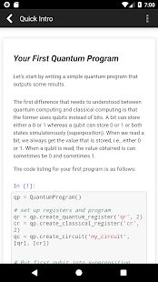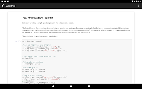 Quantum computing is touted as the next big thing in the computer revolution! The app allows you to learn and program in quantum! It is intended for anybody who has at least some basic programming skills. The tutorials are designed for beginners as well as professionals. The app uses the QISKit SDK and simulator (https://github.com/QISKit/qiskit-sdk-py) licensed under Apache 2.0. Coding is done in Python 3.5.