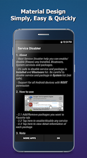 ☆ Disabler บริการ ทำงานร่วมกับอุปกรณ์ Android เกือบทั้งหมด (Samsung, LG, HTC ฯลฯ ) และทำงานร่วมกับ Root ได้รับอนุญาต
