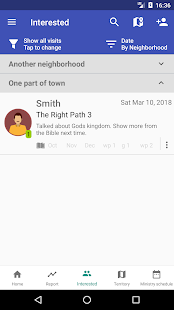 A help for Jehovah's Witnesses in their field service to quickly take notes and stay organized. It's very easy to keep track of your territories, all your return visits, your service time for the month and plan your day or week of door to door ministry.