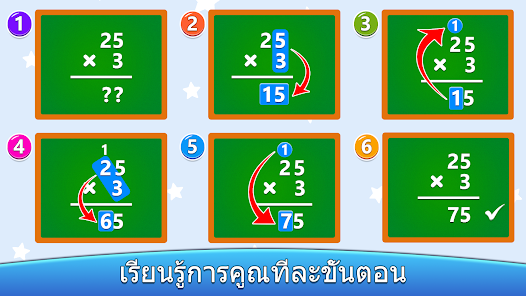 การฝึกฝนทำให้สมบูรณ์แบบ เกมการคูณเหล่านี้จะกระตุ้นความสนใจของผู้ใหญ่และเด็กให้เรียนรู้และฝึกฝนแบบเดียวกันเป็นล้านครั้งโดยไม่เกลียดชัง คุณสามารถฝึกฝนจนยากกลายเป็นง่าย