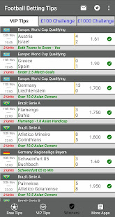 เคล็ดลับการเดิมพันวีไอพีแอพฟุตบอลช่วยให้คุณเข้าถึงเคล็ดลับการเดิมพันฟุตบอลฟรีทุกวัน ผู้ใช้ฟรีจะได้รับเคล็ดลับการเดิมพัน 3 ถึง 4 ต่อวัน คุณยังสามารถรับเคล็ดลับการเดิมพันวีไอพีฟุตบอลโดยชำระค่าธรรมเนียมการสมัครสมาชิกเล็กน้อย ค่าธรรมเนียมนี้ใช้สำหรับการบำรุงรักษาแอพเคล็ดลับการเดิมพันวีไอพีฟุตบอล