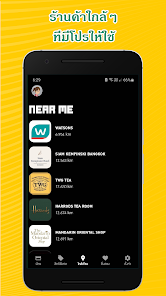 4. แท็บใกล้เคียงแสดงร้านค้าใกล้ ๆ คุณที่มีโปรโมชั่นที่สามารถใช้ได้อยู่