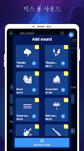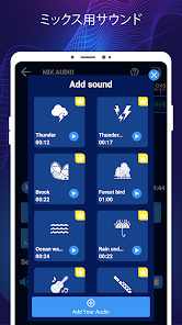 เรารวบรวมเสียงมากกว่า 20 เสียงในชีวิตประจำวันให้คุณมิกซ์กับเพลงของคุณ คุณสามารถเลือกส่วนของเพลงที่คุณต้องการมิกซ์: ลากแทร็กไปทางซ้ายและขวาบนไทม์ไลน์และควบคุมระดับเสียงของไฟล์เสียงสองไฟล์ใน mashup ดูตัวอย่างและบันทึกเพลงที่ไม่ซ้ำใครของคุณ