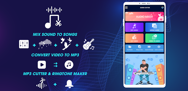 ⚡ โปรแกรมตัดต่อเพลง: ตัวตัด mp3, มิกซ์เสียง เป็นแอปพลิเคชั่นที่ทรงพลังสำหรับผู้ที่ต้องการแก้ไขเพลงและสร้างริงโทนในเพลงใด ๆ ง่ายและไม่ต้องใช้ทักษะการแก้ไขเสียงใดๆ Music Editor รองรับเครื่องมือที่ยอดเยี่ยมทั้งหมดในการมิกซ์เสียง ตัด mp3 แปลงวิดีโอเป็นเสียง ตัวเปลี่ยนความเร็วเพลง... อย่างรวดเร็ว
