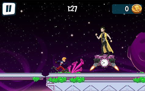 เวลา jerker และพันธมิตรชั่วร้ายของเขาได้หนีผ่านช่วงเวลา เก็บเหรียญบ้าในขณะที่คุณเลื่อน, กระโดด, ดำน้ำและชกมอนสเตอร์ยักษ์ข้าวโพดคั่วในประแบบ nonstop นี้เพื่อหยุดพวกเขา!