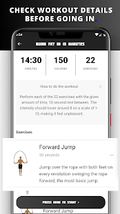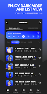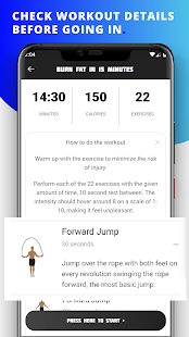 Jump Rope App workouts are built around different combinations of jump rope and bodyweight exercises to help you burn calories, build strength, and improve endurance. Workouts range from 5 to 30 minutes.