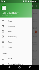 This app is designed to catch your device's notifications and toast messages, which pops up on your device and store them in order to browse and search them later even if they were dismissed. You can also define filters for notifications which are undesirable, so they will not be saved and will not appear in lists or search results.