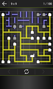 Your goal is to connect every house on board to power factory. Follow power line with your finger, start from power factory, rotate line and let electricity flow to all houses.