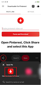 Click "Share" and choose Video downloader for Pinterest App.
