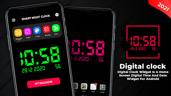 นี่คือแอพ Night clock ที่มีการออกแบบนาฬิกาอะนาล็อกและดิจิตอลที่แตกต่างกันเพื่อตั้งเป็นวอลล์เปเปอร์สด ในที่นี้ เราเปิดเผยว่าเราได้ใช้แบบอักษรดิจิทัลที่ "ลิขสิทธิ์ฟรีสำหรับใช้ในเชิงพาณิชย์" ซึ่งตั้งชื่อว่า "Let's Go Digital" โดย WLM Fonts แบบฟอร์มดาวน์โหลดฟรี https://www.fontsc.com/font/lets-go-digital