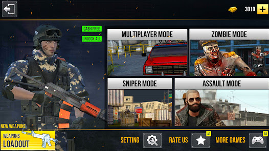 สนุกไปกับการต่อสู้ยิงปืนขั้นสุดยอดในเกมออฟไลน์นี้ ในเกมมือถือเช่นนี้ภารกิจของเกมนี้สำรวจภารกิจการยิงแบบออฟไลน์แบบคลาสสิกเพื่อความสนุกอย่างแท้จริง เกมปืนออฟไลน์เป็นหนึ่งในเกมยิงออฟไลน์อันดับต้น ๆ ที่จะเล่นกับเพื่อน ๆ ในเกมยิงคอมมานโดสมรภูมิจริงออฟไลน์ คุณยังสามารถเปลี่ยนปืนและเลือกอาวุธที่คุณชื่นชอบได้อีกด้วย War Games นำเสนอเกมยิง 3 มิติที่ยอดเยี่ยมและเกมแอคชั่นที่จะสร้างความบันเทิงให้กับคุณด้วยประสบการณ์การเล่นเกมที่ไม่มีใครเทียบได้ และตอบโต้ศัตรูของคุณในเกมสงครามยิง 3 มิติที่น่าตื่นเต้นนี้ โดยค่าเริ่มต้น คุณจะได้รับปืนพก ปืนไรเฟิล และมีดเพื่อสังหารผู้ก่อการร้ายในเกมสงครามยิงปืนนี้