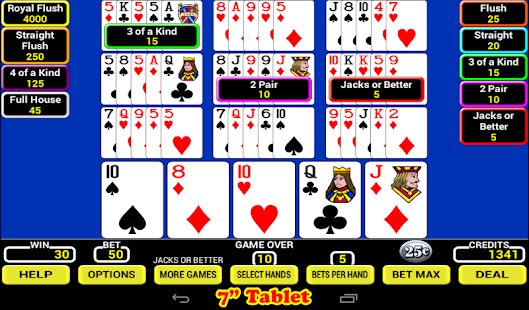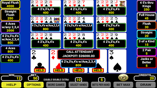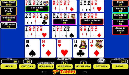 • 7 Video Poker games to choose.