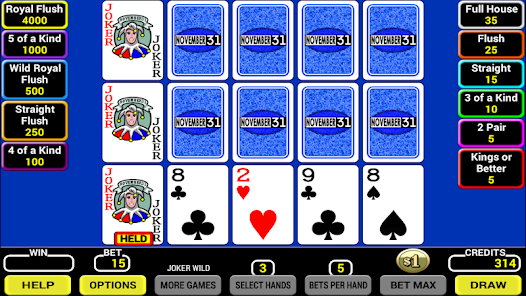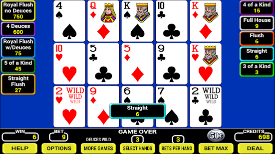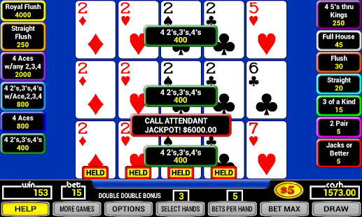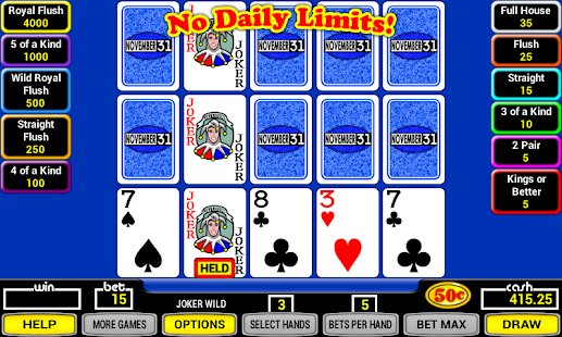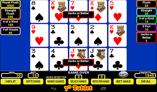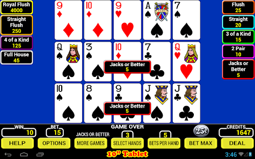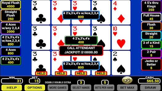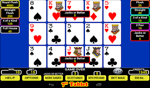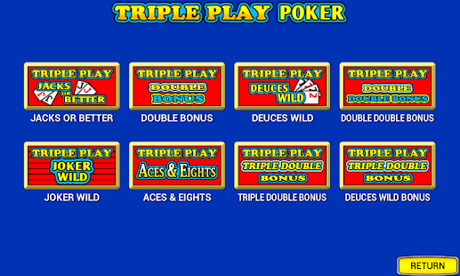 Three hand multi-play video poker. Three hands at once for three times the action! Unlike slots machines, video poker allows the player to use skill to beat the house. Play this popular game just like in Vegas.
