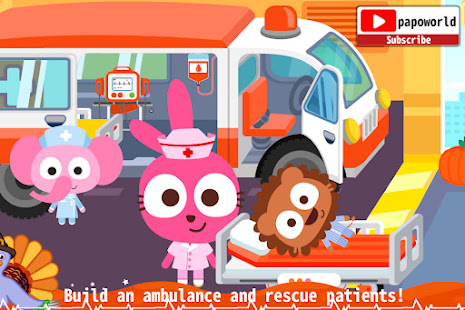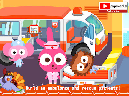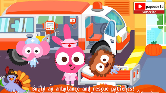 เล่นกับเพื่อนที่น่ารัก 13 คนจาก Papo world! ลากเข้าไปในฉากและเริ่มสร้างเรื่องราวของคุณ! ตอบสนองความอยากรู้อยากเห็นของเด็ก ๆ ในโรงพยาบาลและขจัดความกลัวในโรงพยาบาลออกไป! มีเหรียญทองมายากลซ่อนอยู่ในสถานที่และพื้นต่าง ๆ ค้นหาเหรียญทองทั้งหมดป้อนให้หุ่นยนต์เพื่อสร้างรถพยาบาลที่ทำงานได้อย่างสมบูรณ์!