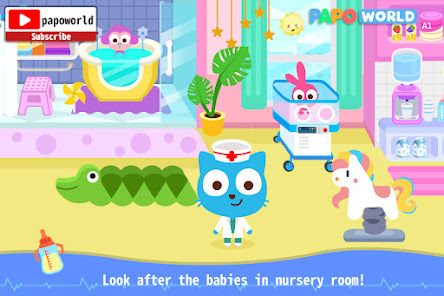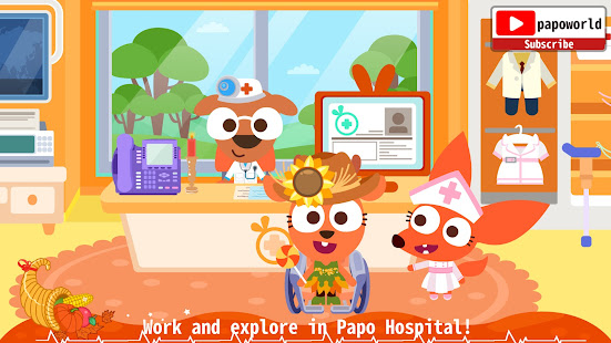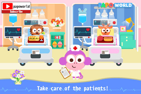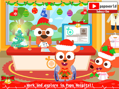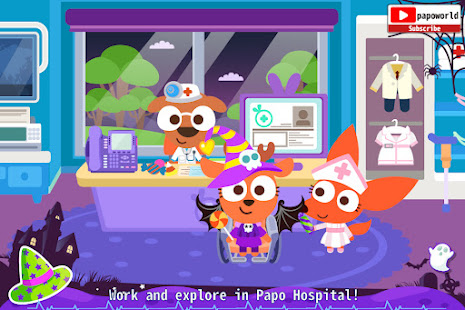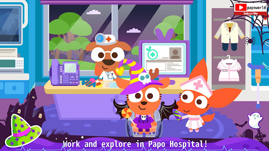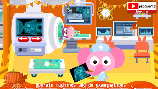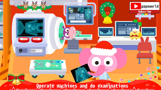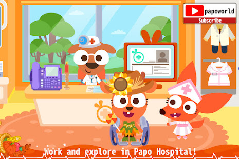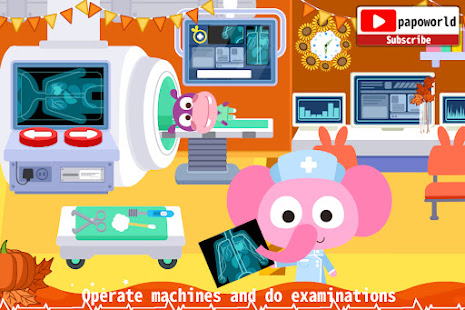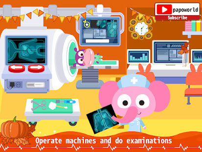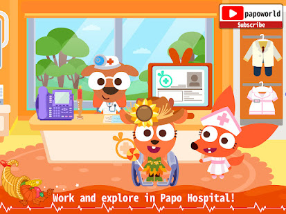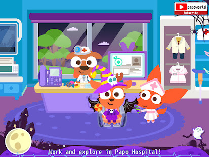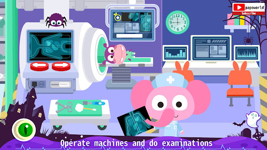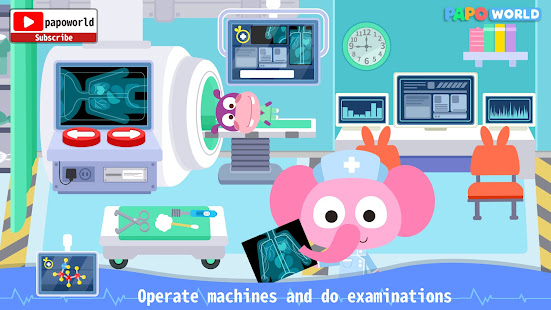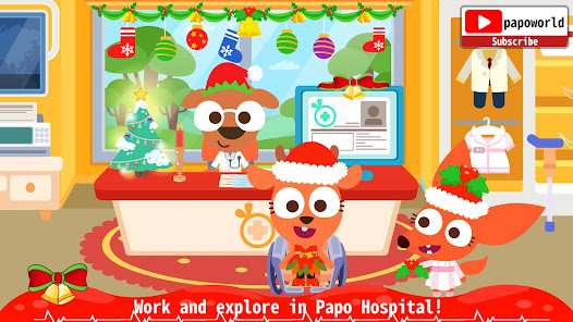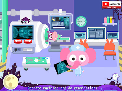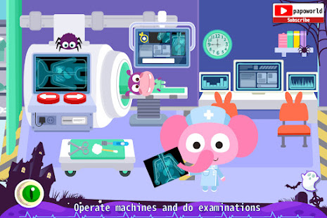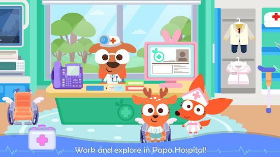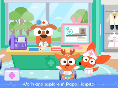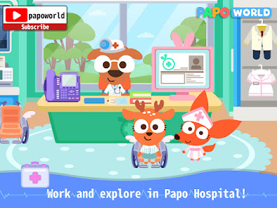 คุณอยากเป็นหมอหรือไม่? เริ่มฝึกงานที่โรงพยาบาล Papo Town! ทำงานเป็นหมอเพื่อรักษาชาวเมือง! คุณรู้วิธีการใช้งานเครื่องเอ็กซเรย์หรือไม่? วิธีการตรวจเช็คฟันของโคลินแคทหรือทำงานในศูนย์ฉุกเฉินเพื่อรักษาผู้ป่วย สำรวจในโรงพยาบาลและเป็นหมอที่ยอดเยี่ยม!