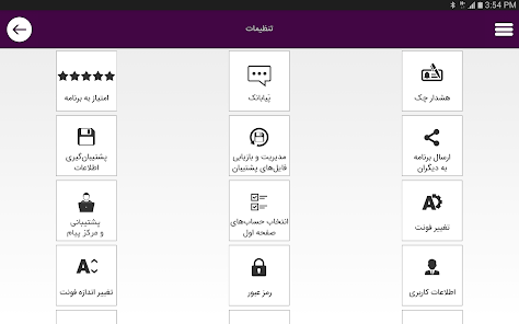 ریز امکانات برنامه در زیر اومده، ما در پارمیس تمام تلاشمون را کردیم که بهترین را در اختیار کاربران قرار بدیم که نظرات خوب کاربران هم نشون میده که در این امر موفق بودیم.